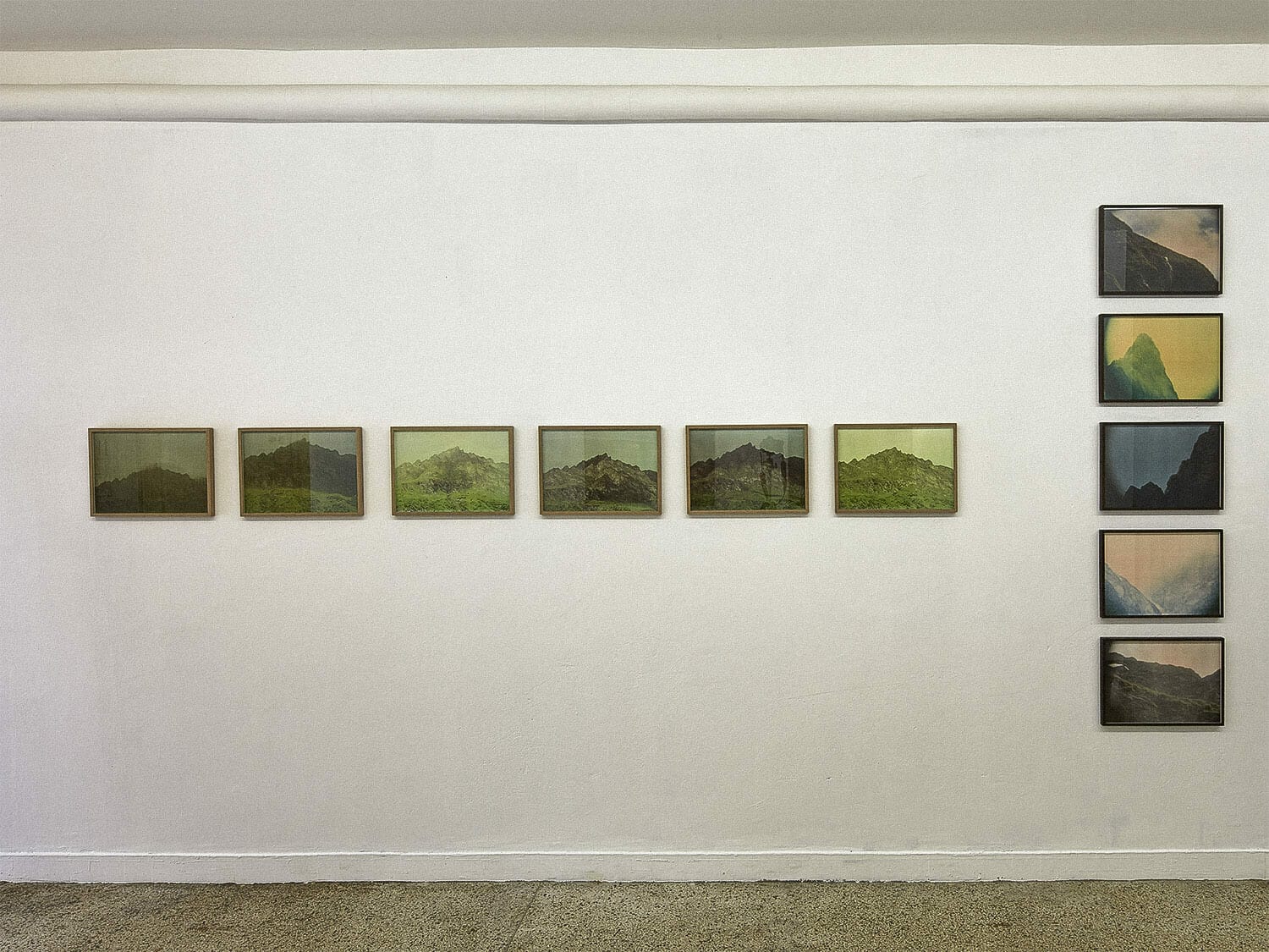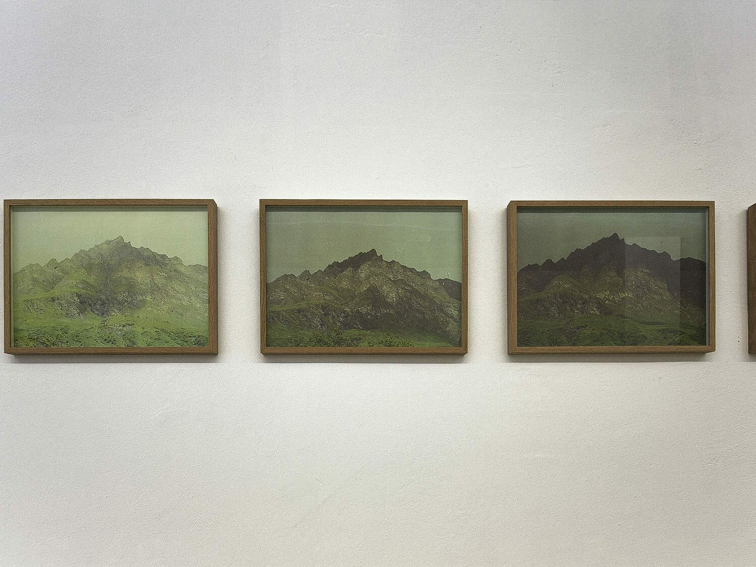 bergen // Series of six images: self-developed 35mm color negative photographs of mountain landscape (Safiental, Graubünden), as framed laser print, 29 × 41 cm, 2017