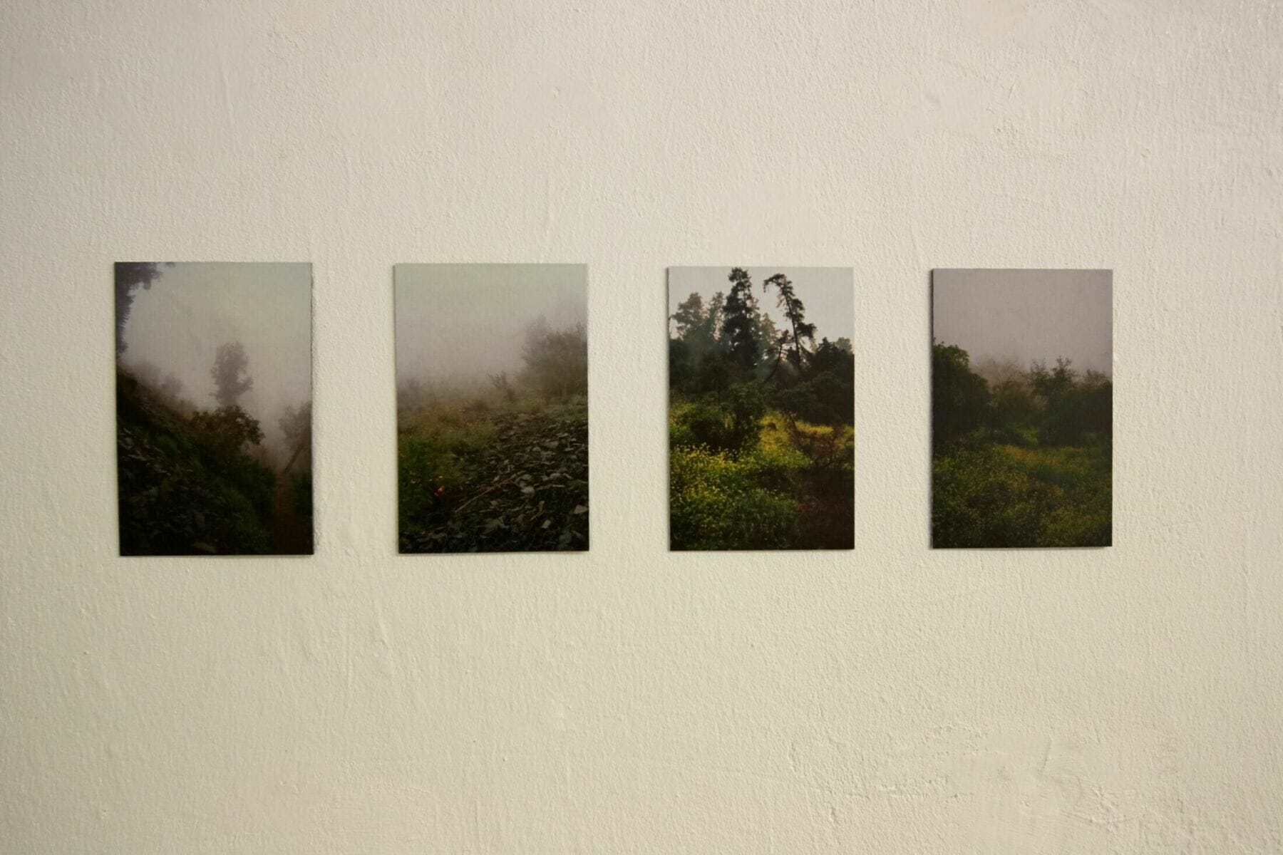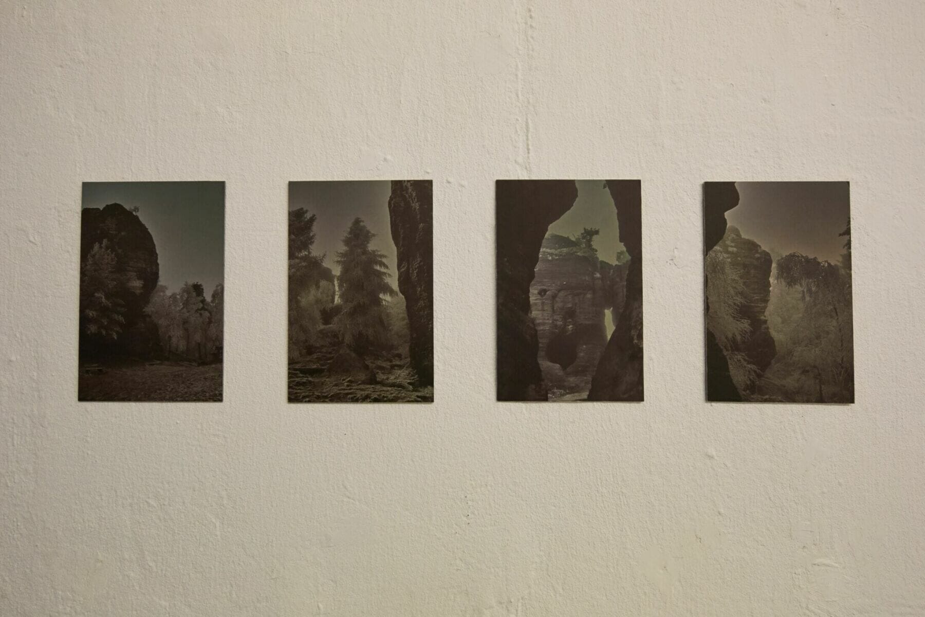 Tisá (Bohemian Switzerland, Czech Republic), digital photographs of mountain landscape as inkjet print on self-adhesive textile foil, laminated on steel plate, 12 × 18 cm each, 2016