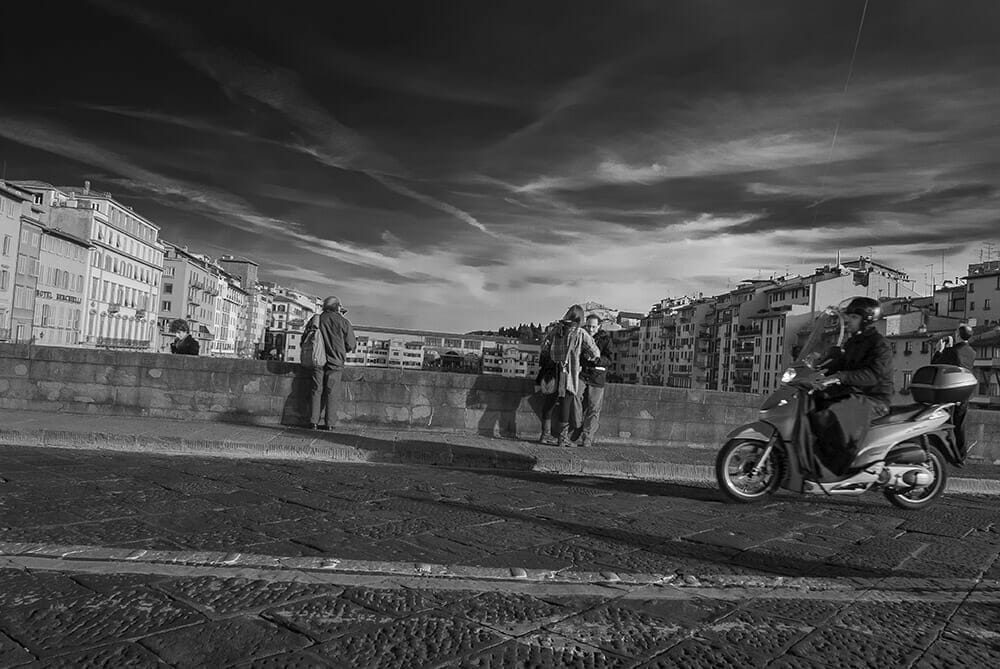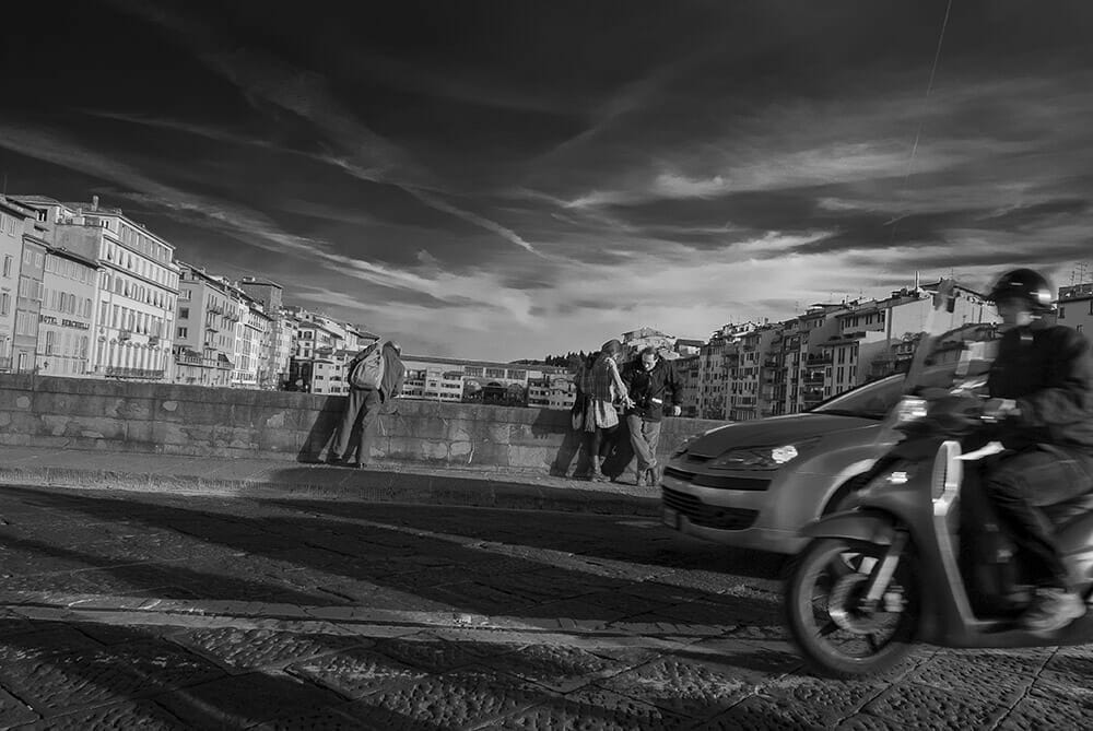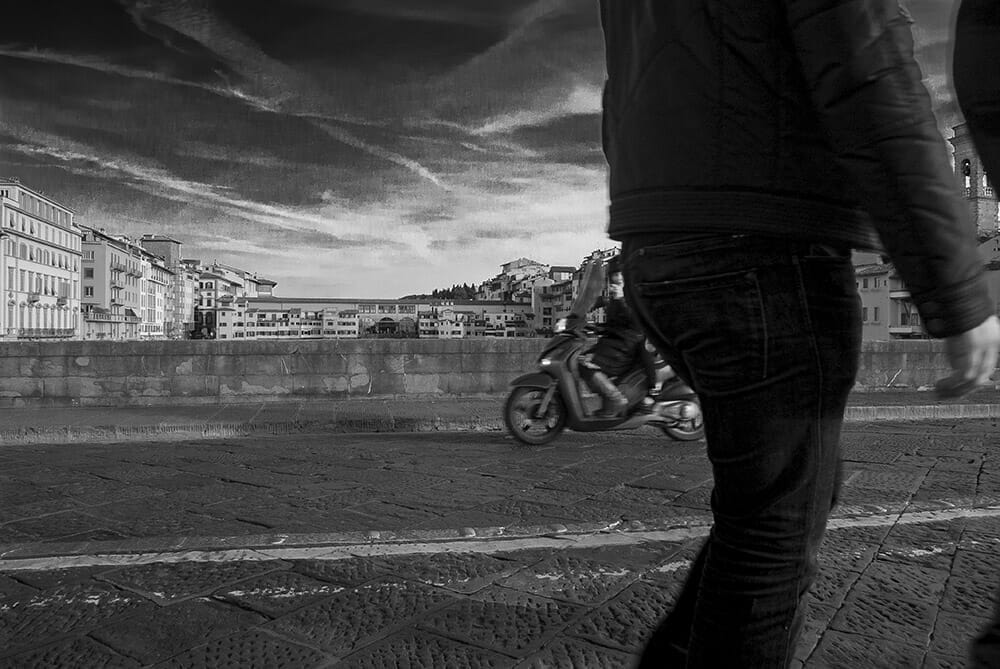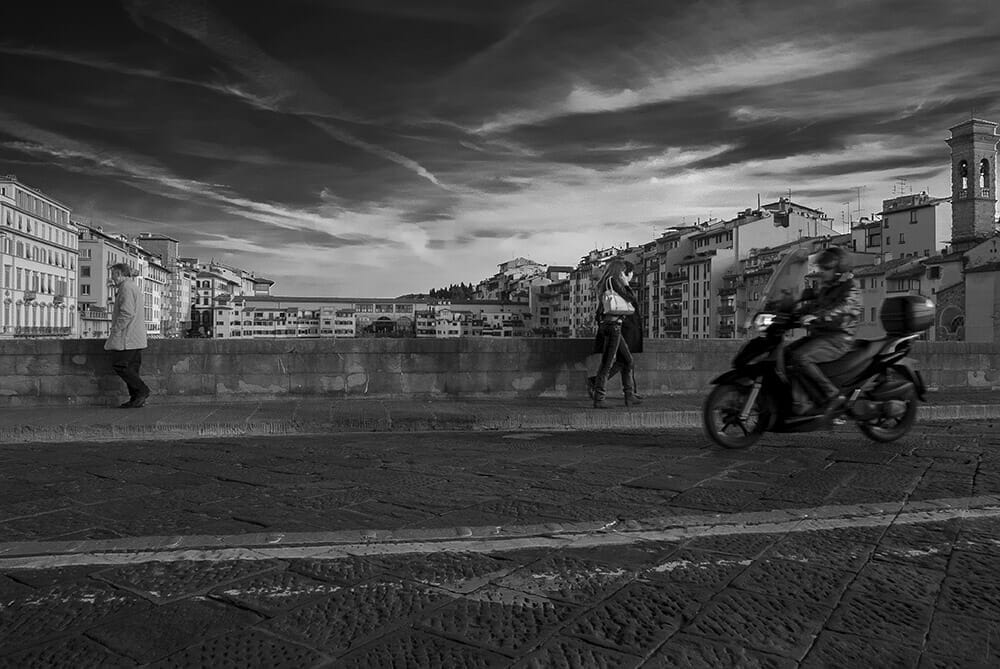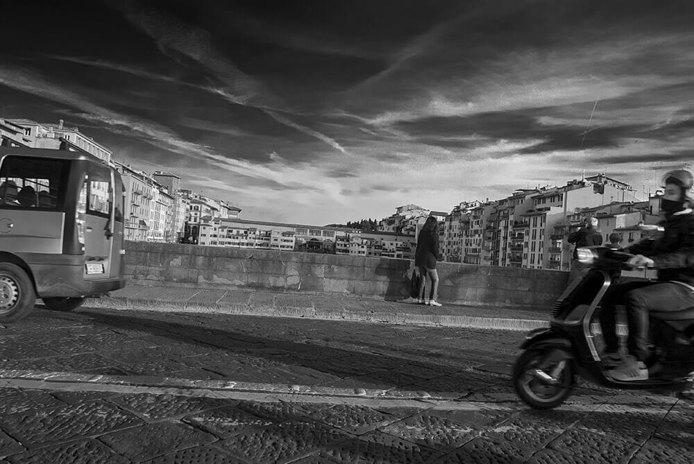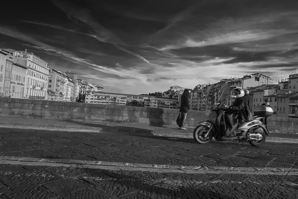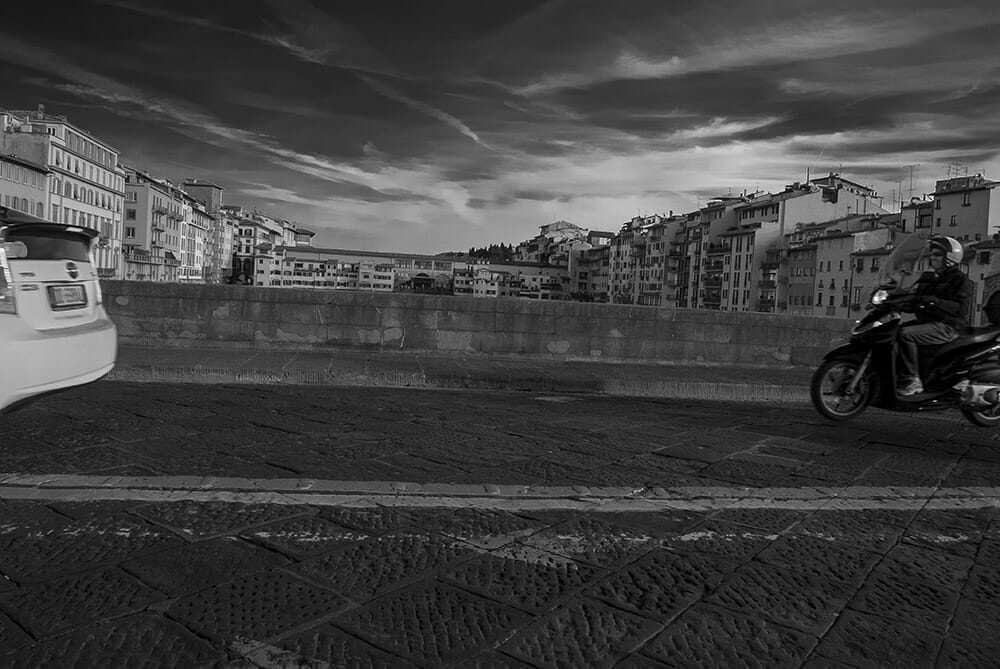 Von einer Brücke aus die Stadt beobachten. Kamera hüfthoch, den Auslöser gedrückt halten.