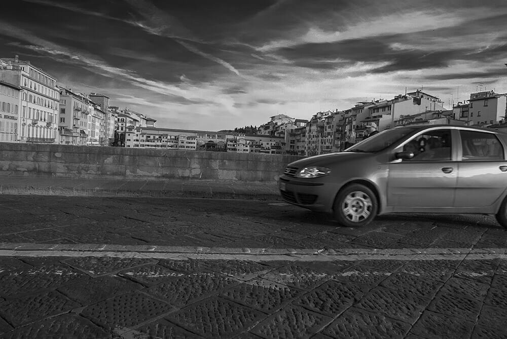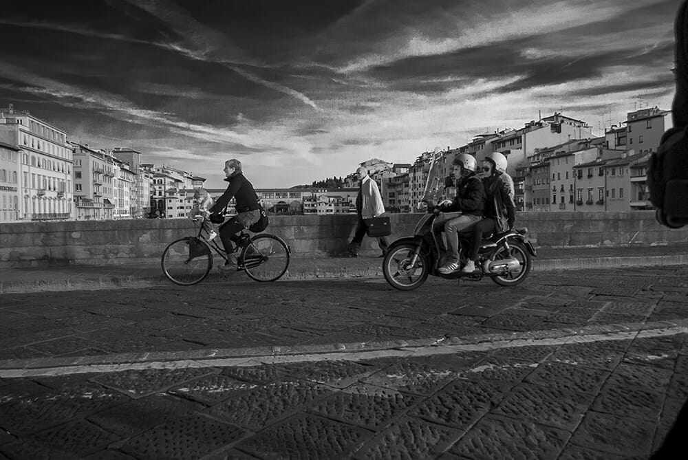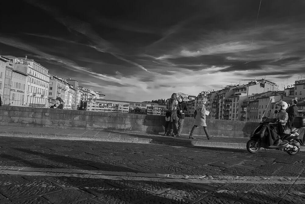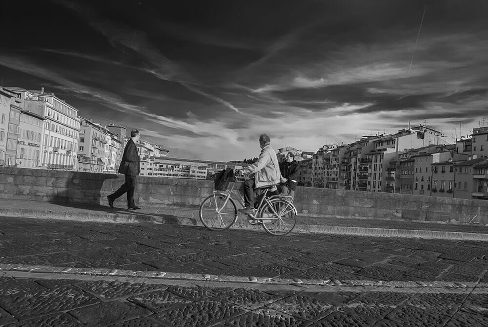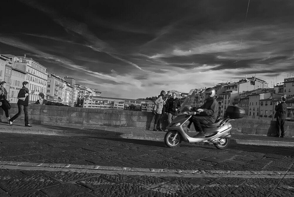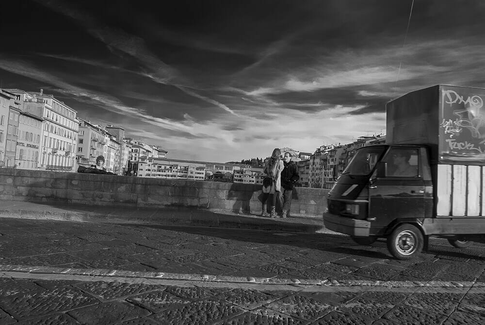 Von einer Brücke aus die Stadt beobachten. Kamera hüfthoch, den Auslöser gedrückt halten.