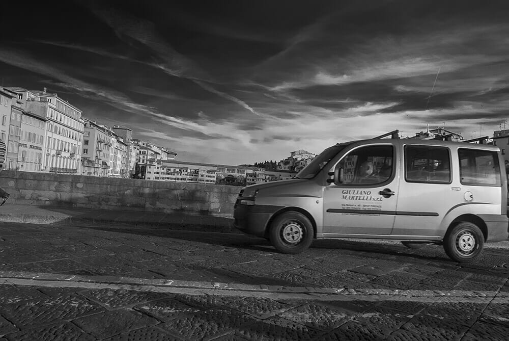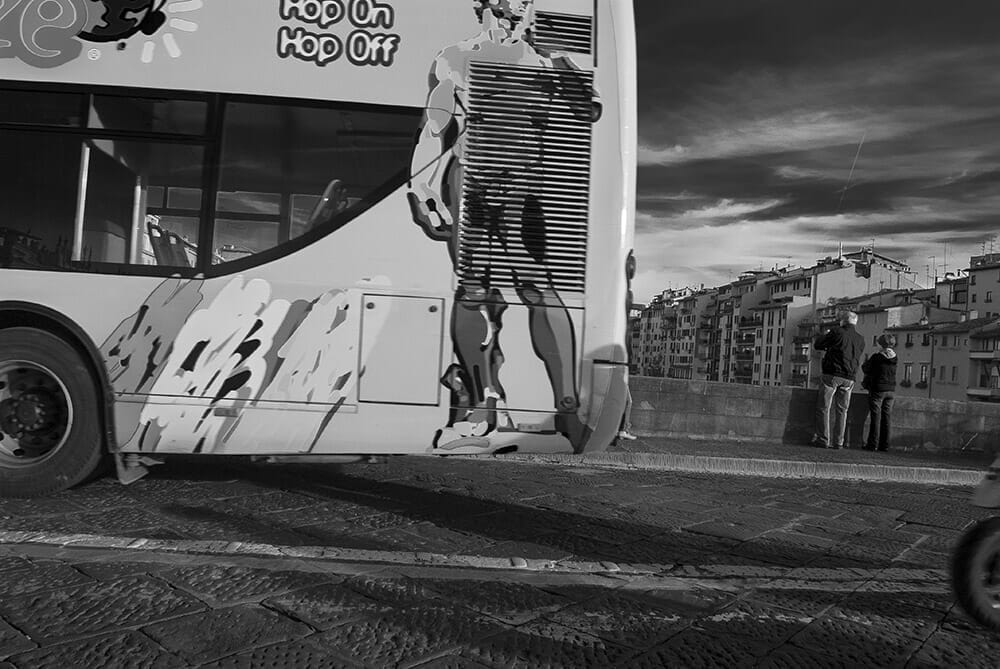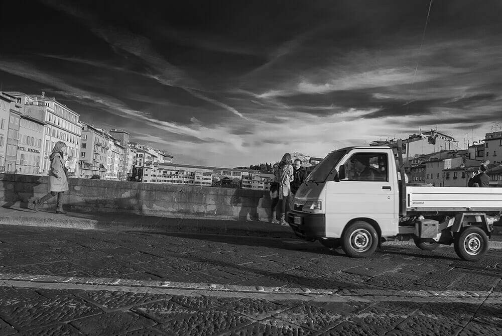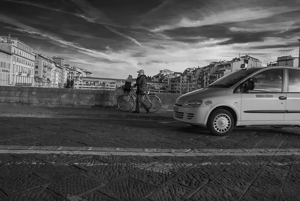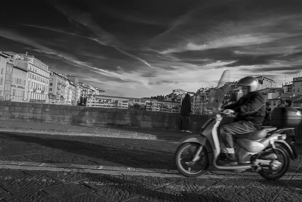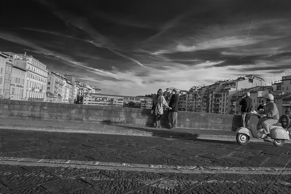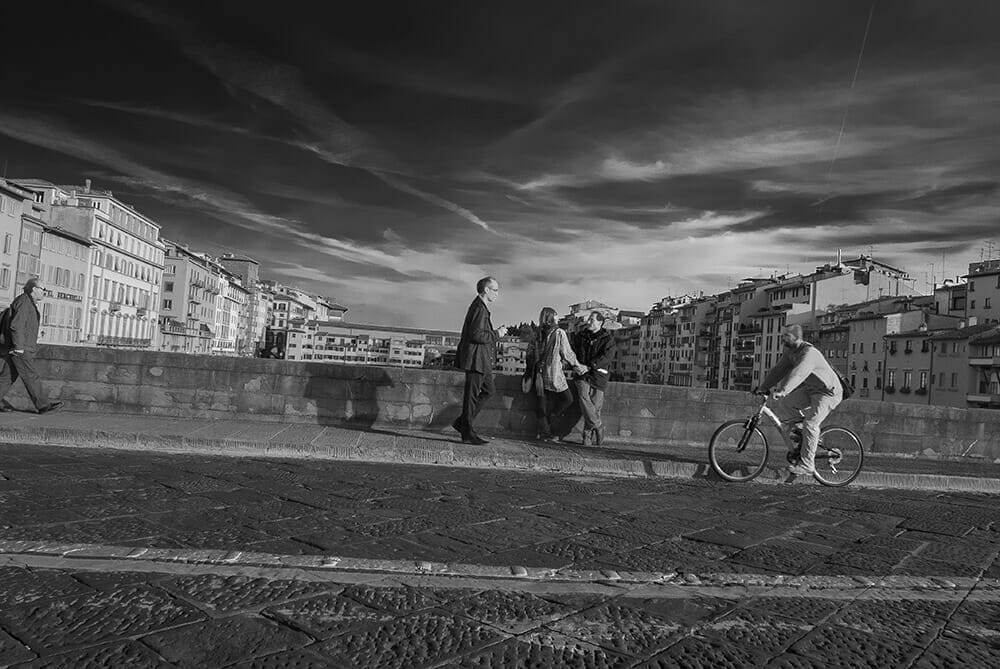 Von einer Brücke aus die Stadt beobachten. Kamera hüfthoch, den Auslöser gedrückt halten.