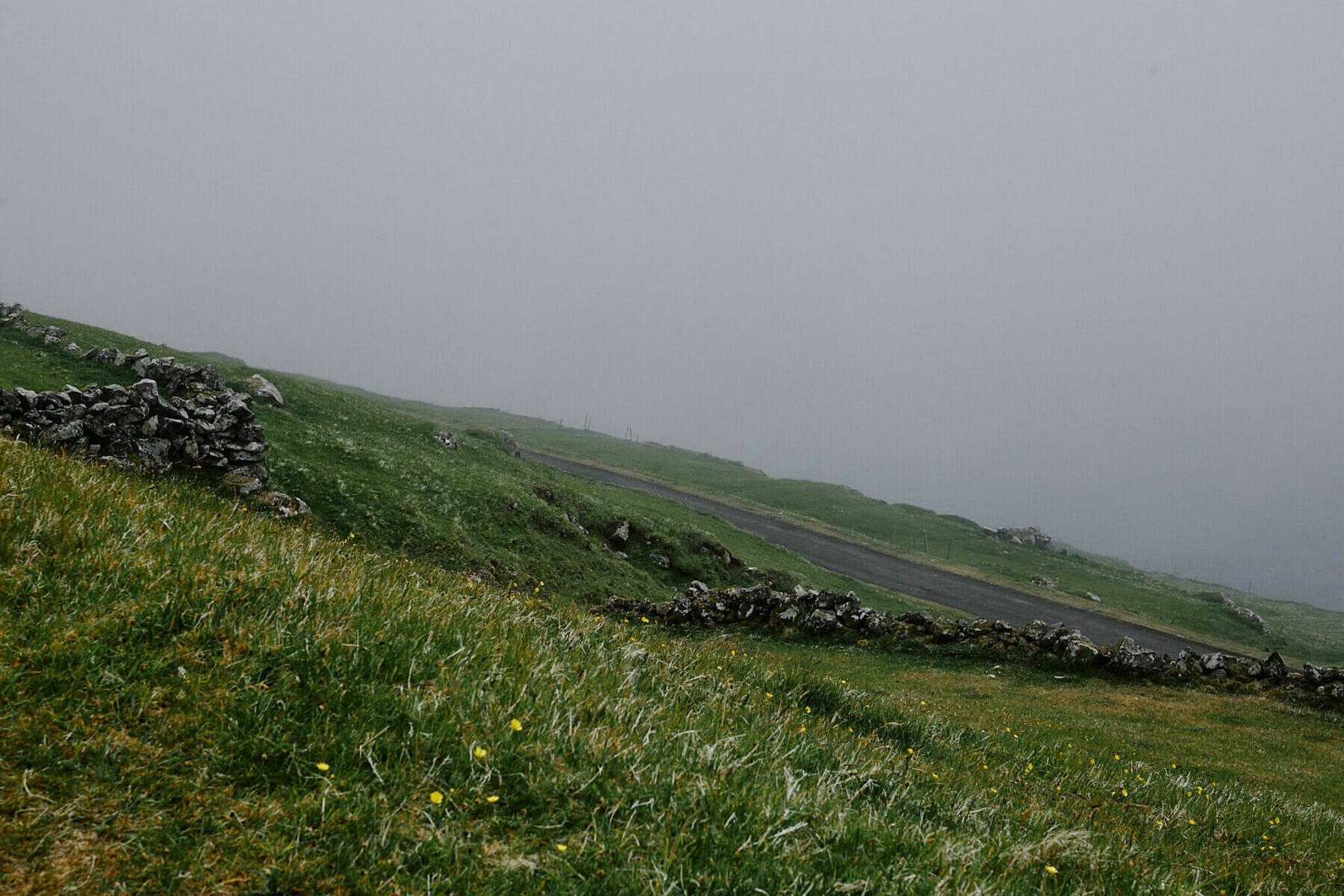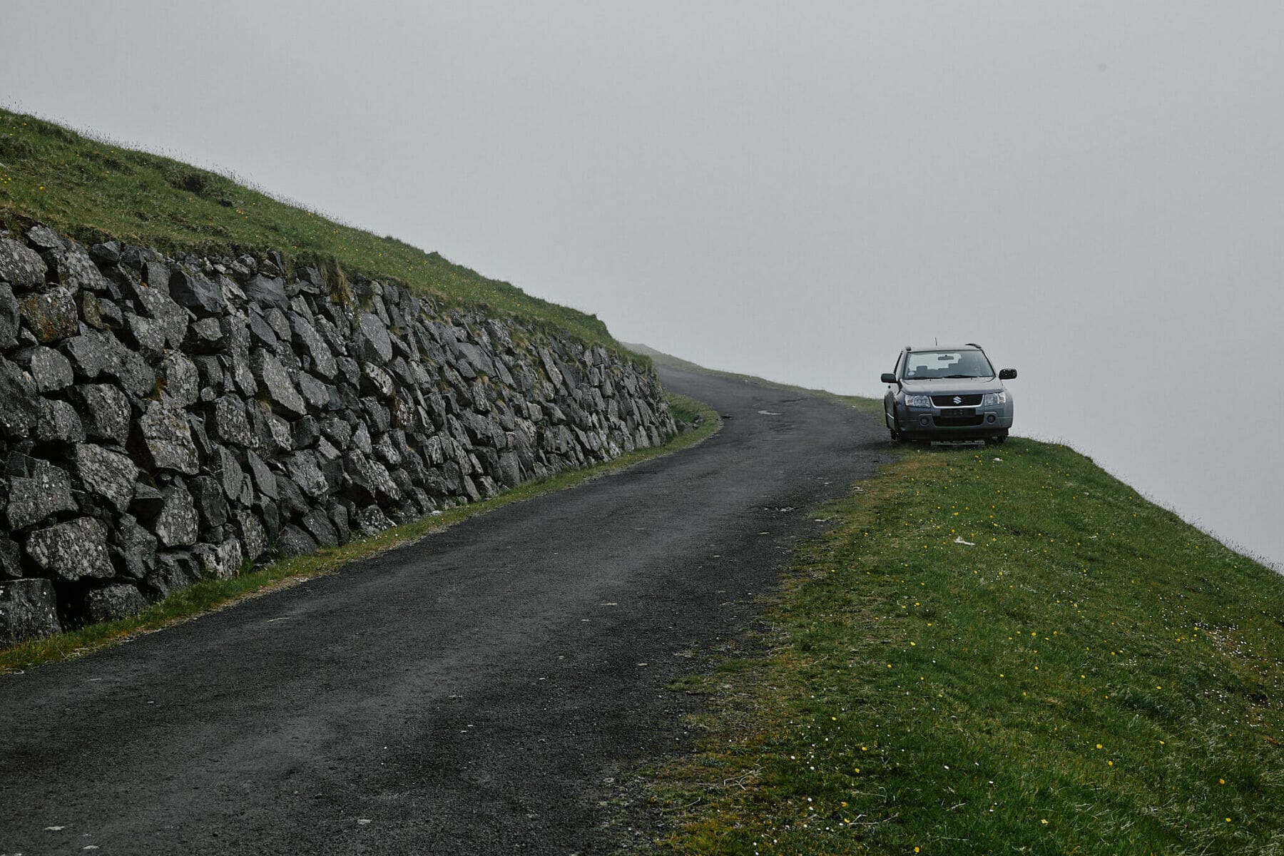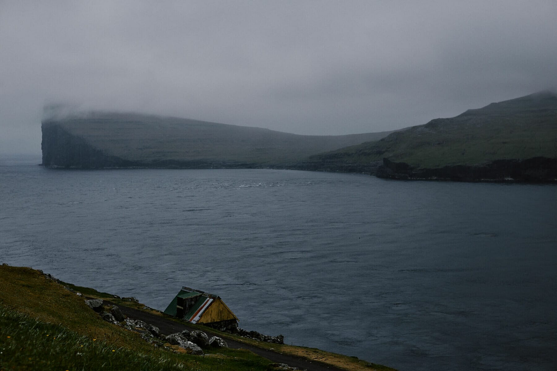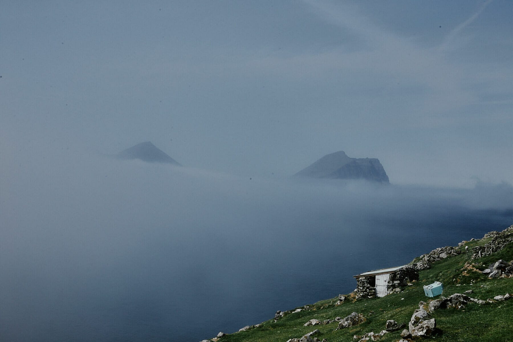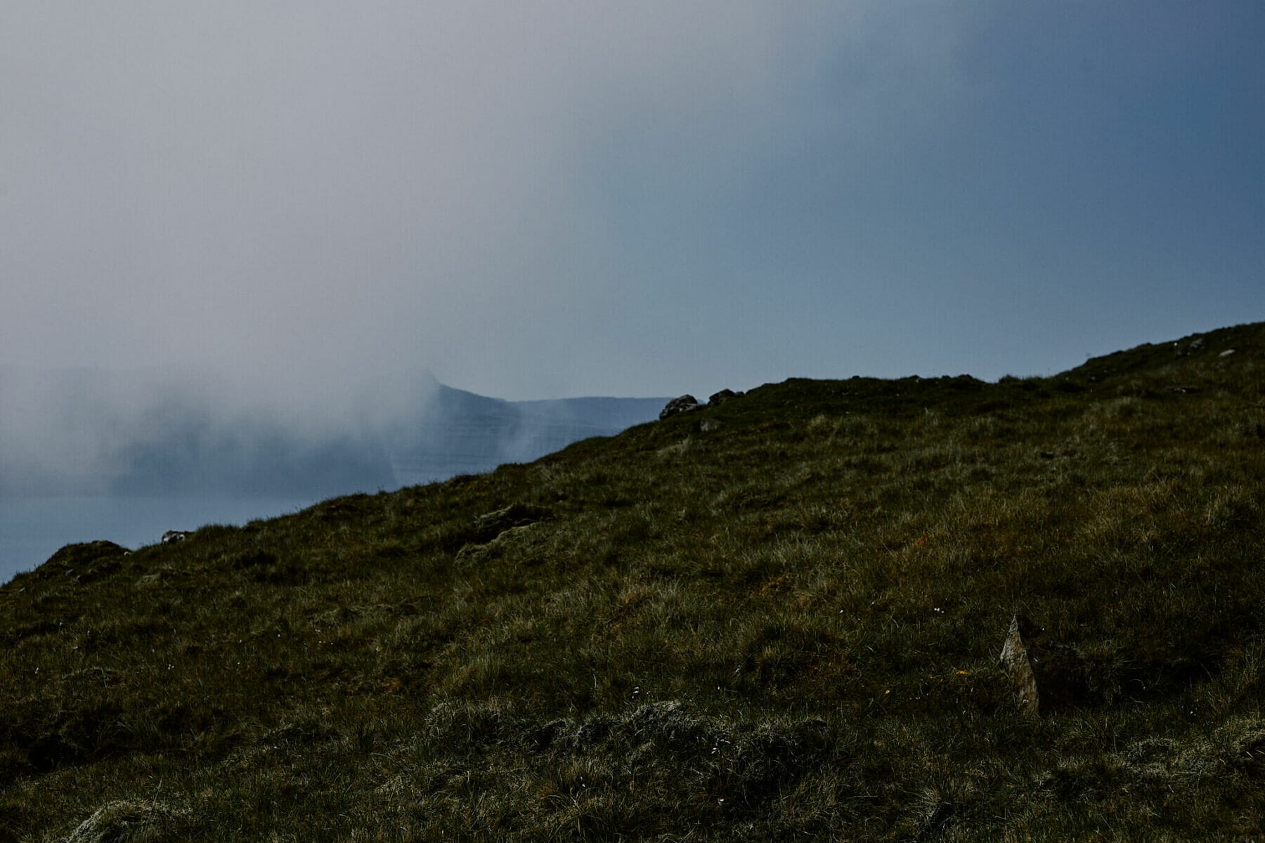 Fugloy, eine der Färöer-Inseln, liegt im Nordatlantik und bietet eine von der Zeit und den Elementen geprägte Landschaft. Besucht Juni 2023.