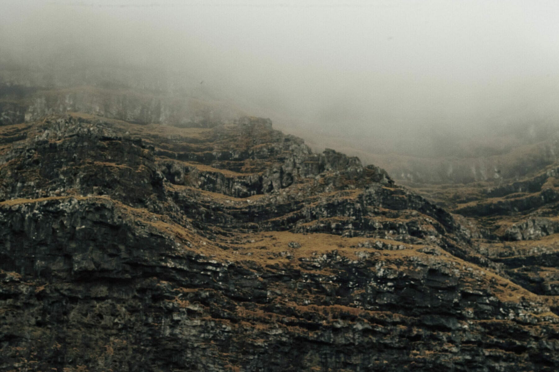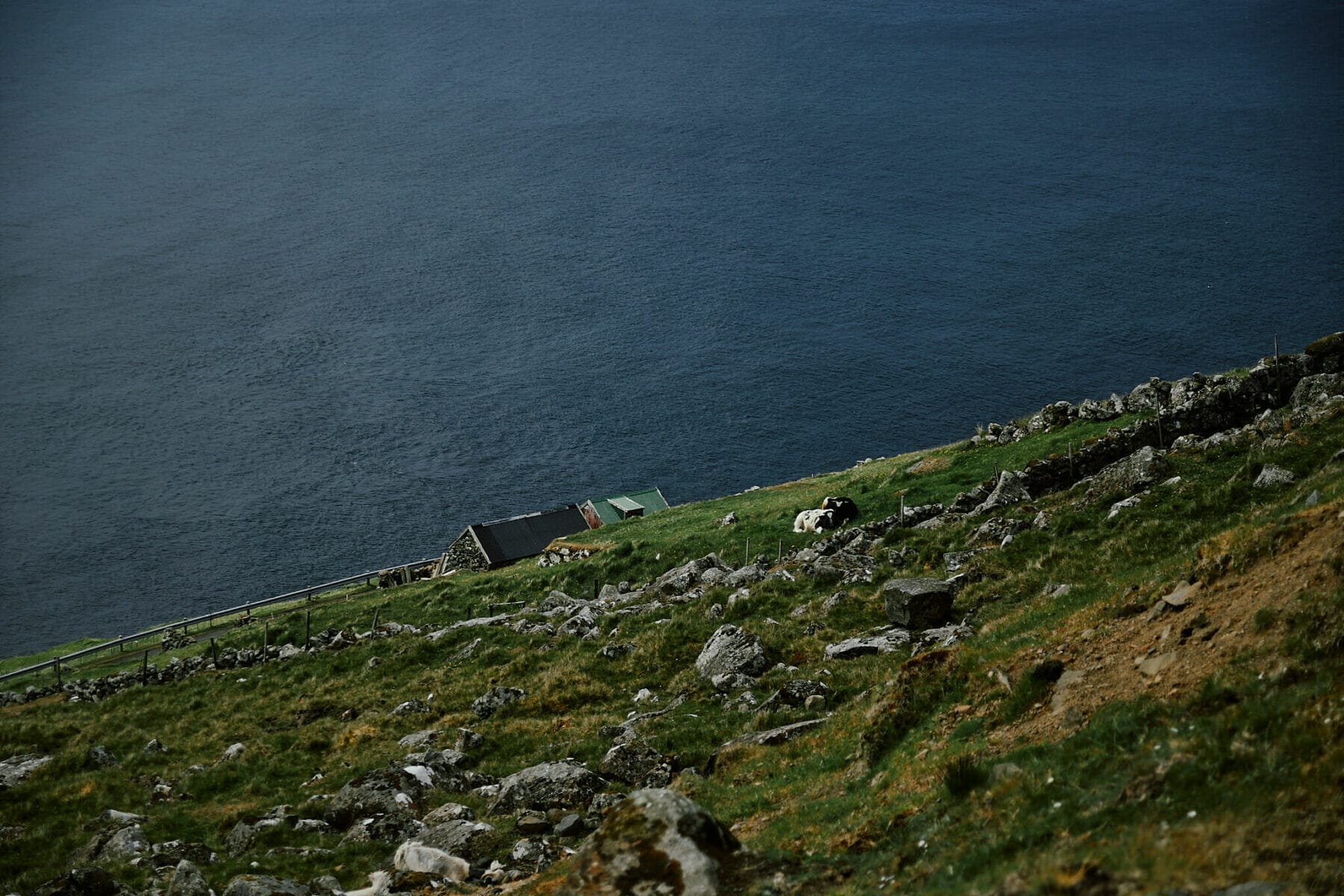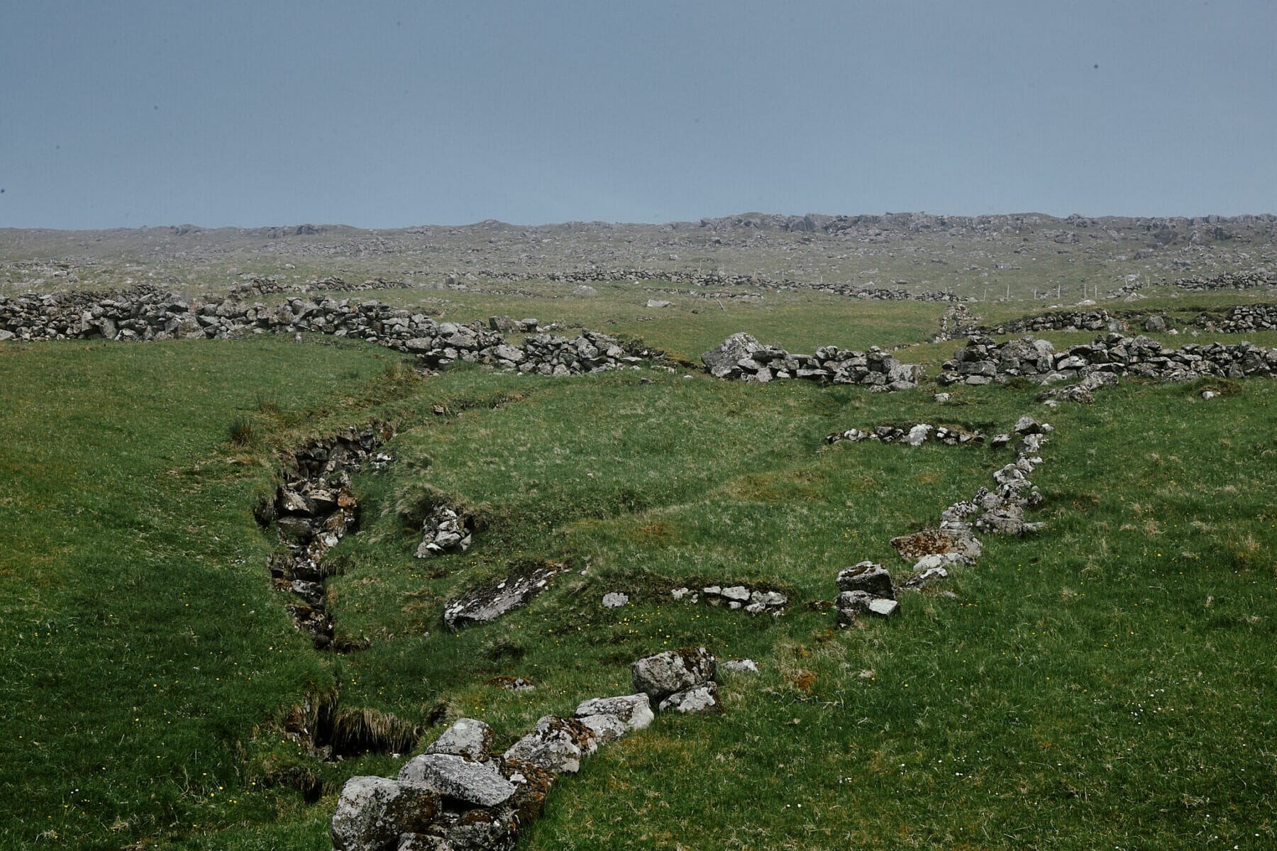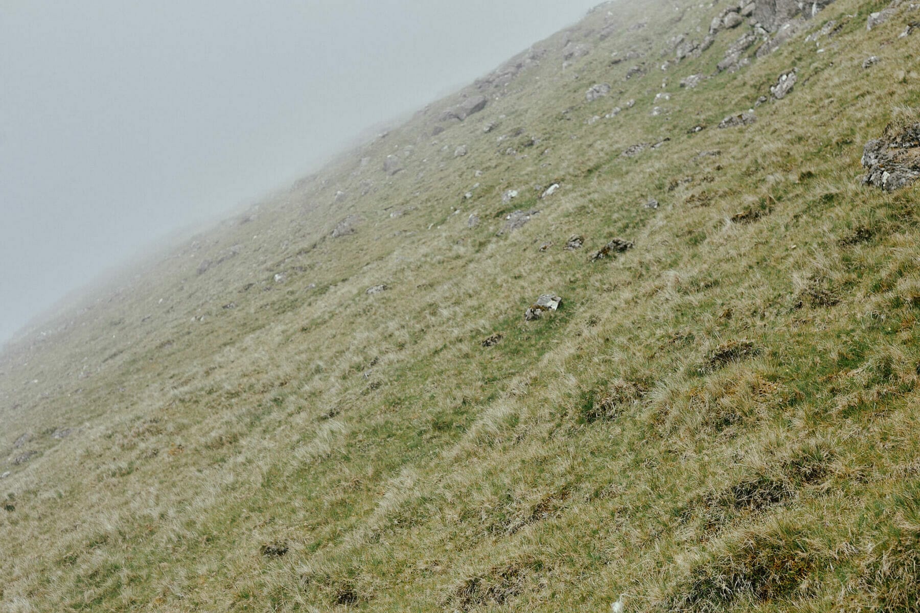 Fugloy, eine der Färöer-Inseln, liegt im Nordatlantik und bietet eine von der Zeit und den Elementen geprägte Landschaft. Besucht Juni 2023.