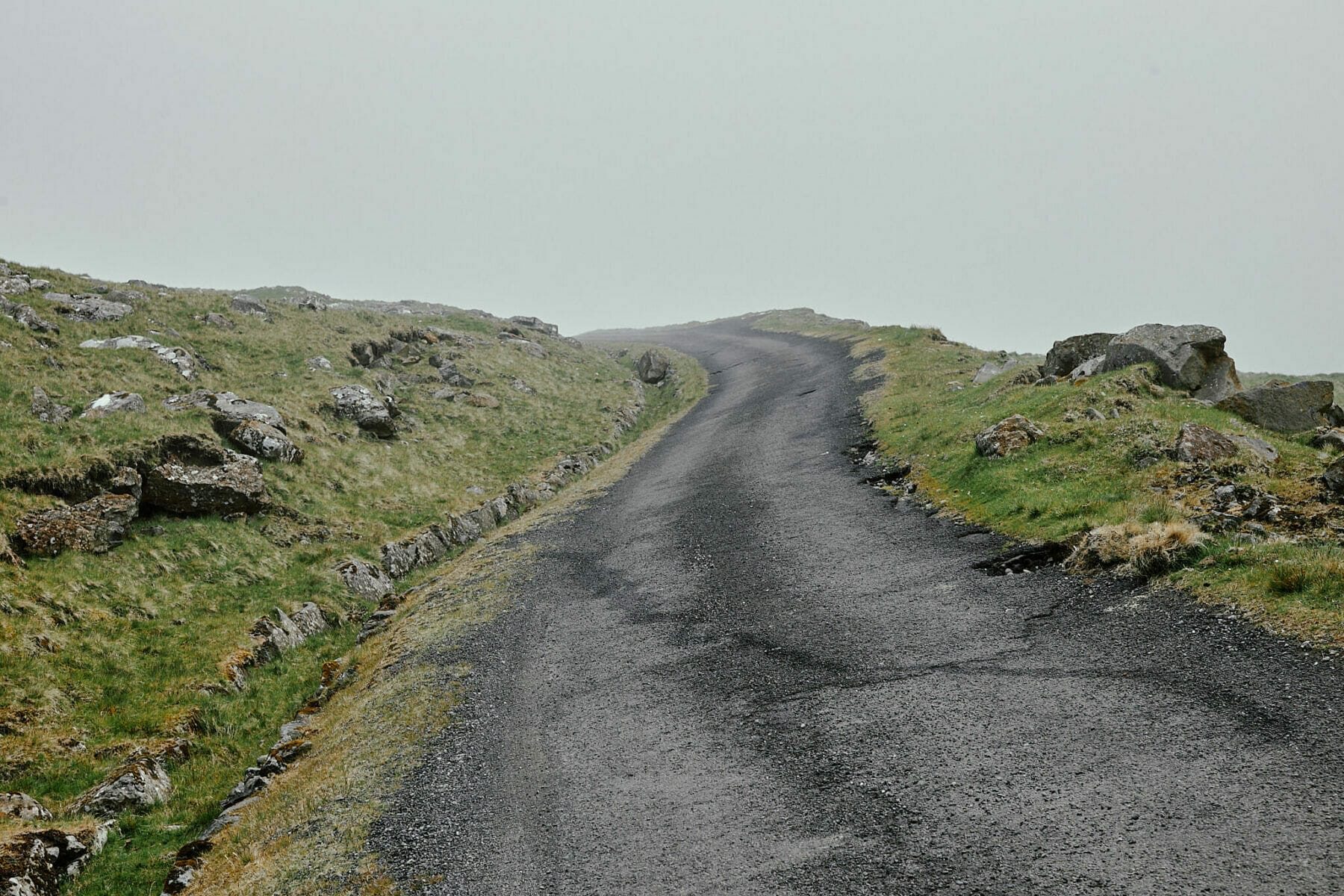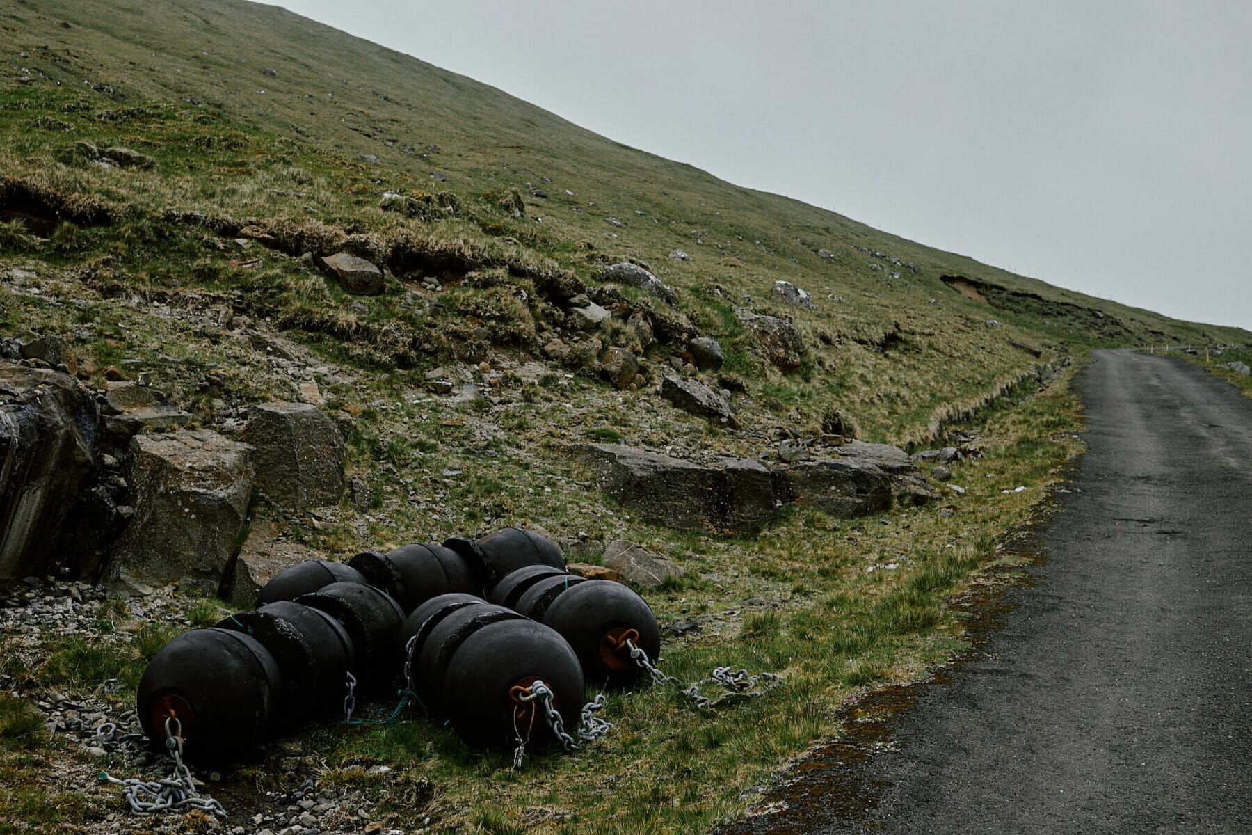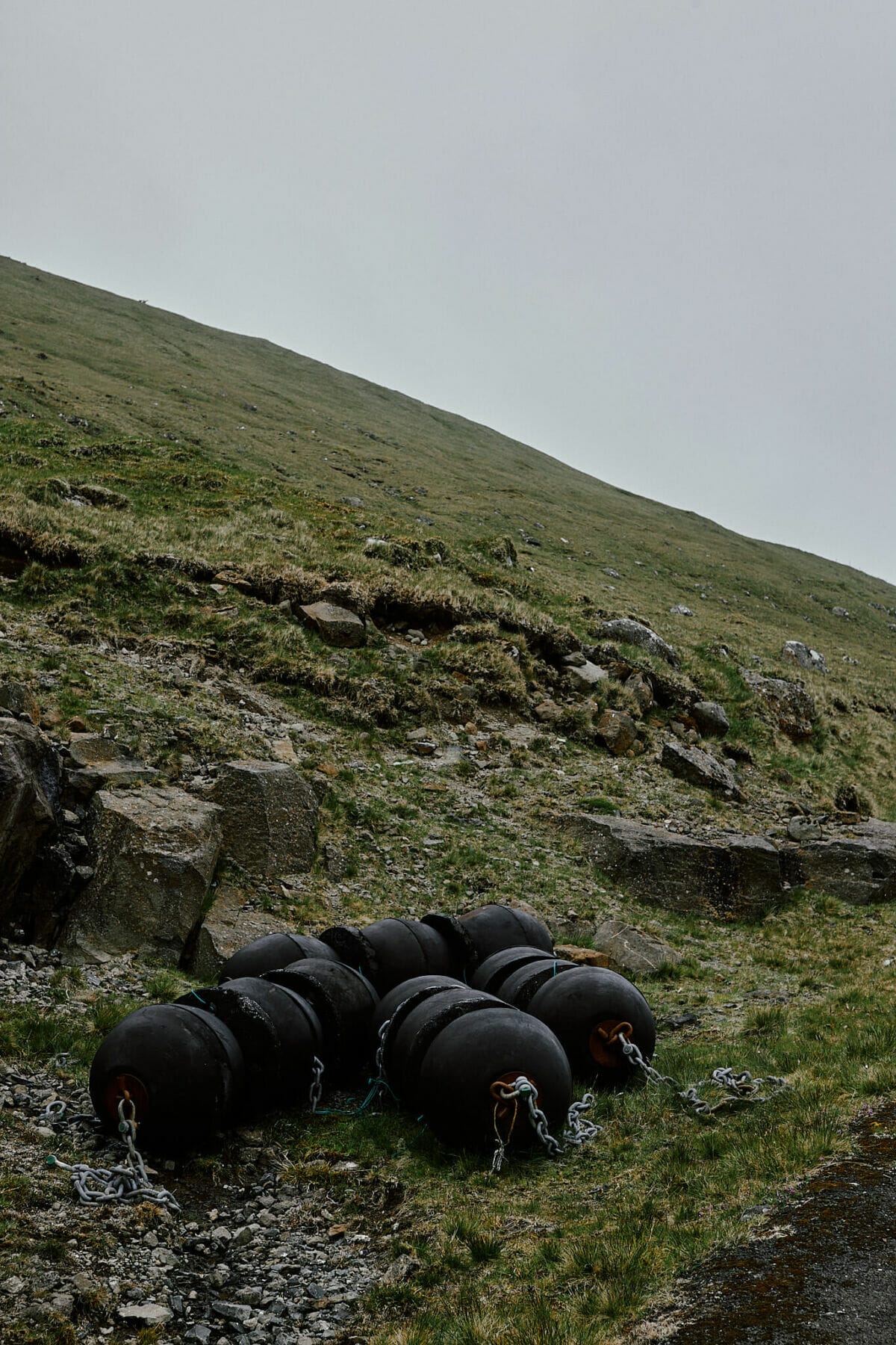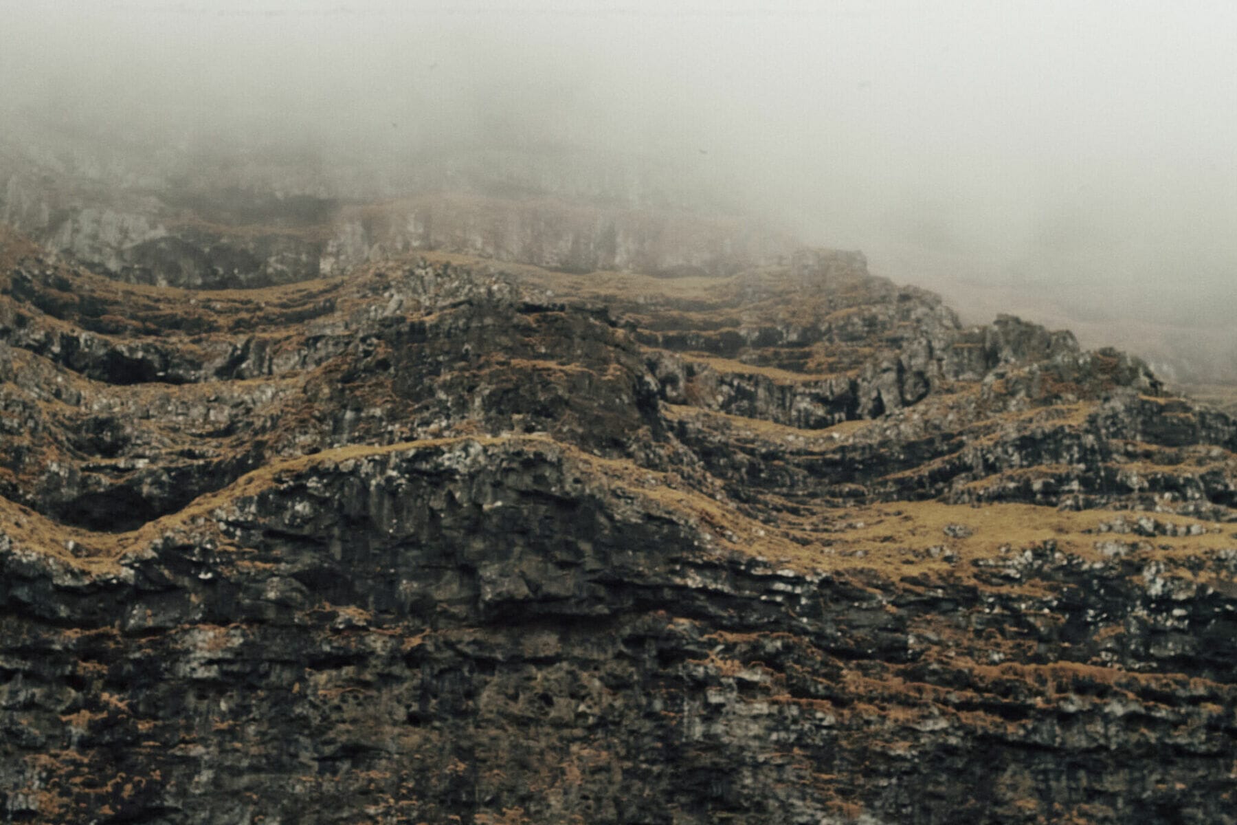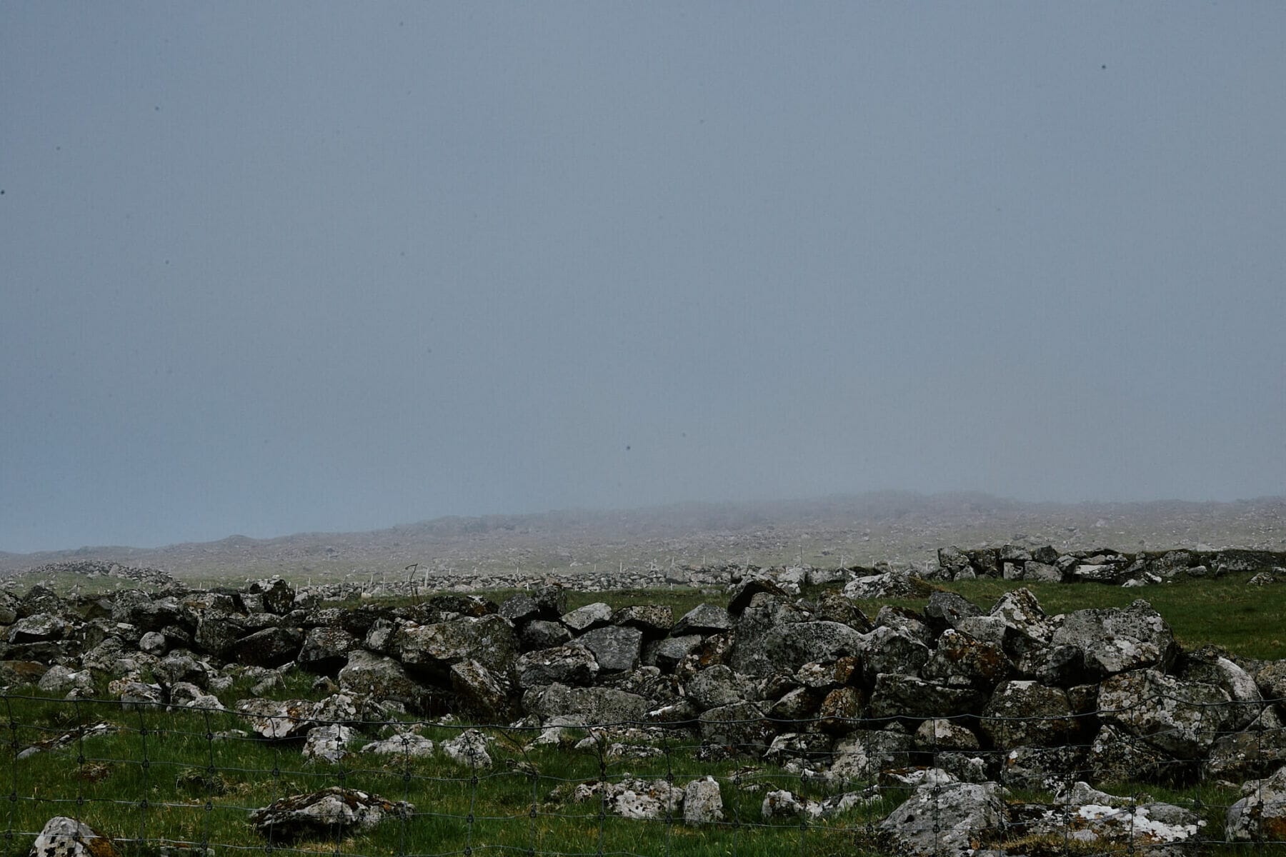 Fugloy, eine der Färöer-Inseln, liegt im Nordatlantik und bietet eine von der Zeit und den Elementen geprägte Landschaft. Besucht Juni 2023.