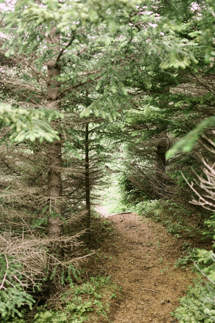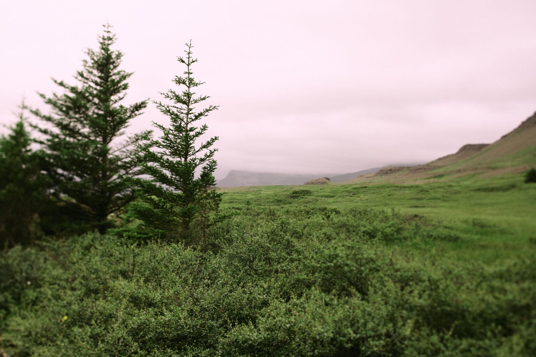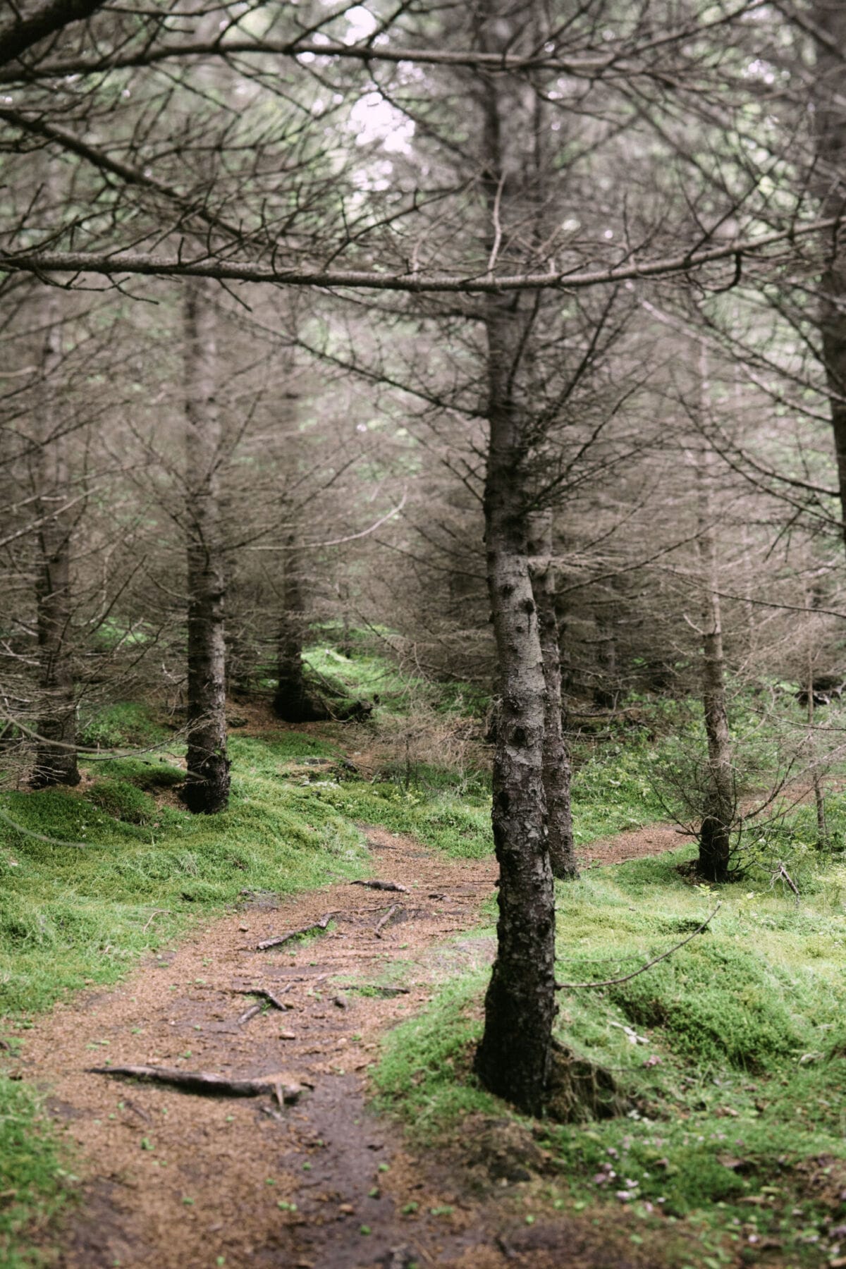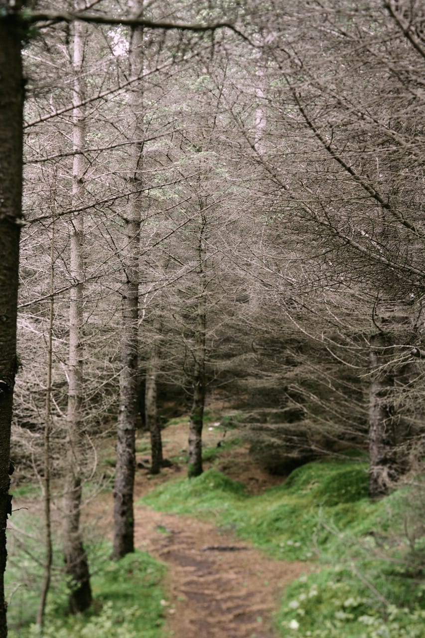 Spaziergang in einem isländischen Wald.