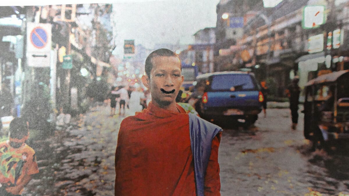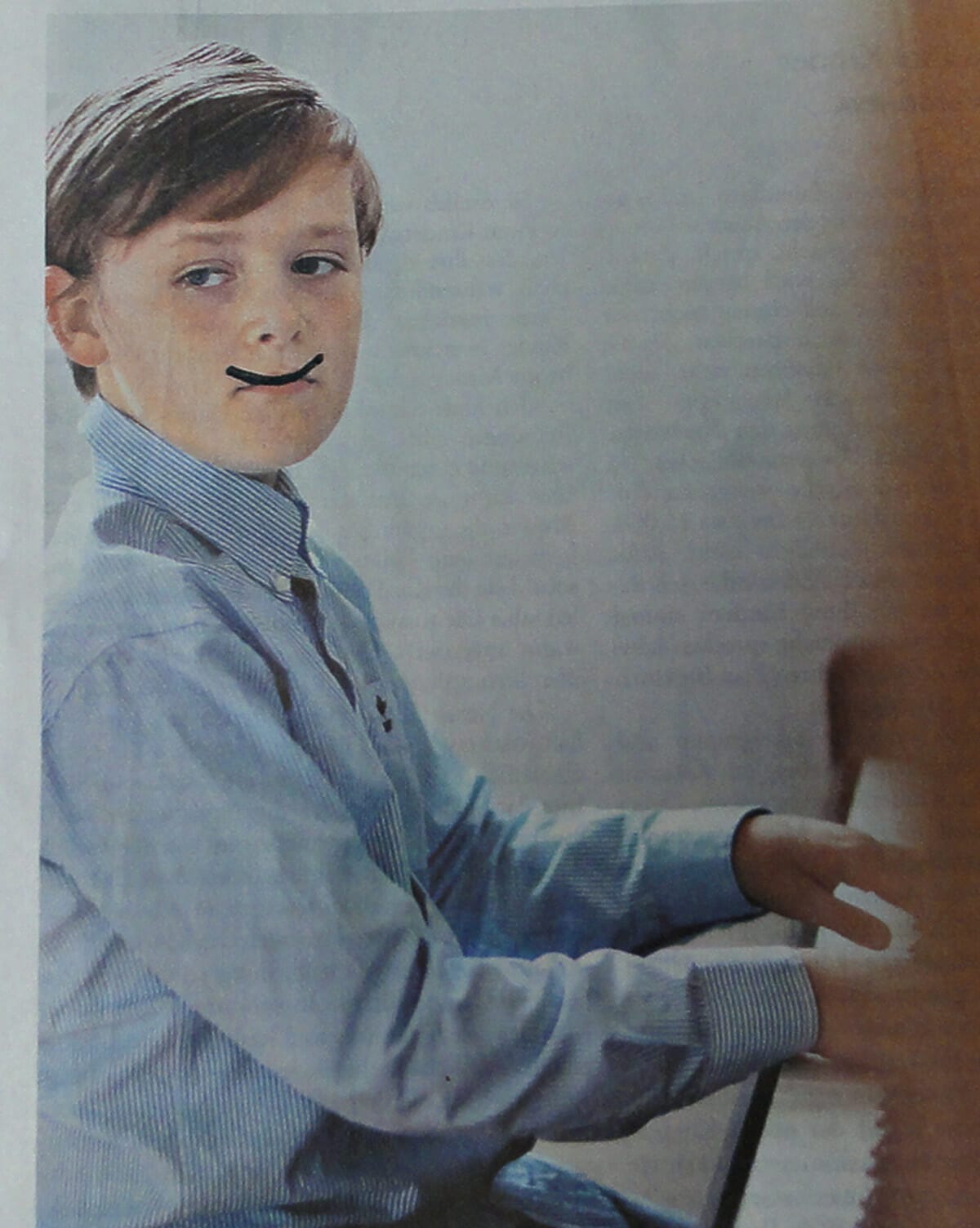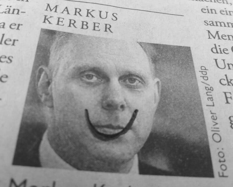Mit einer Kompaktkamera fotografierte ich nicht-lächelnde Gesichter in Zeitungen,